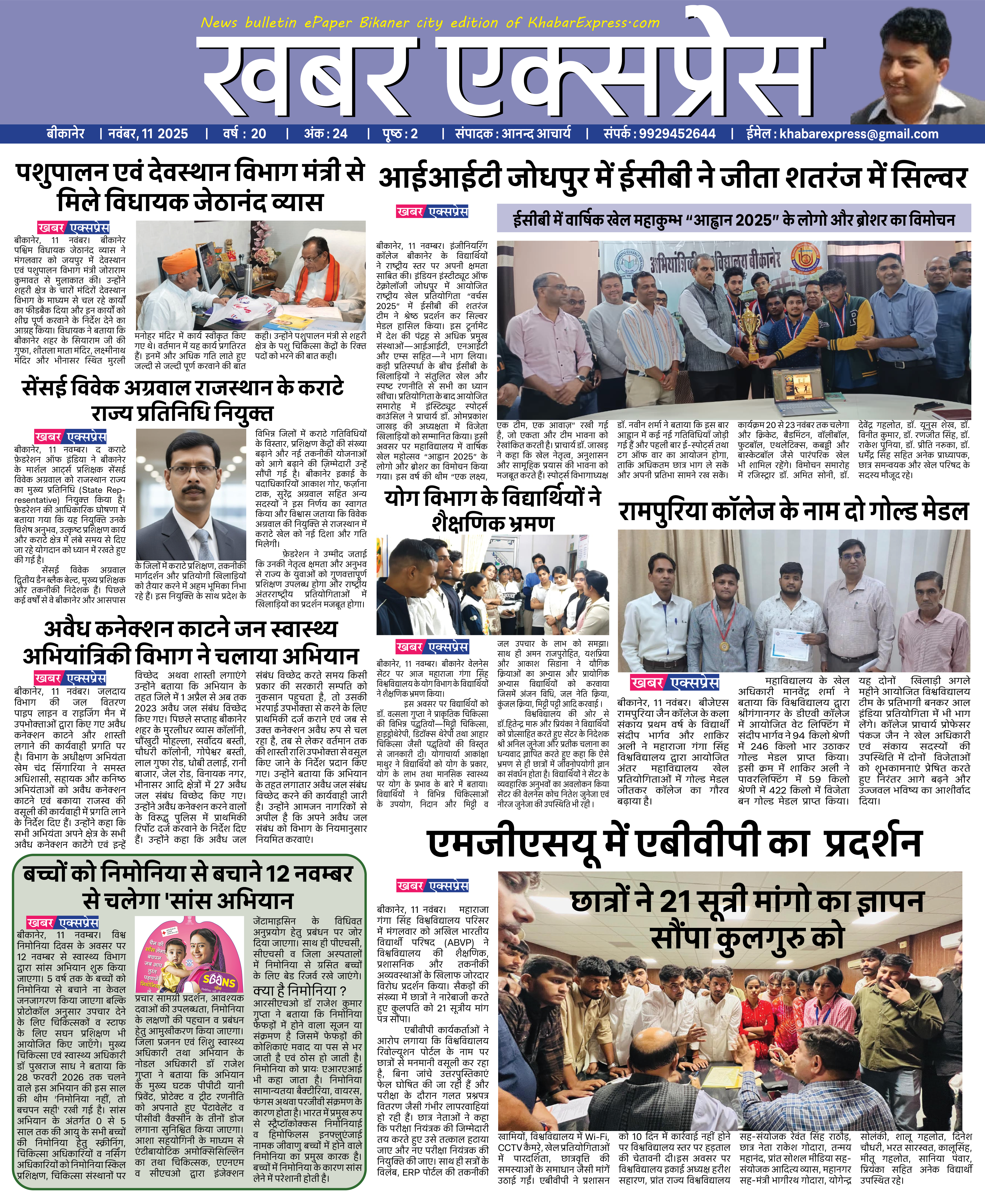 मुख्यपृष्ठ Bikaner ePaper KhabarExpress dated 11 November 2025 byAnand Acharya Published:11/13/2025 01:03:00 pm Facebook Twitter