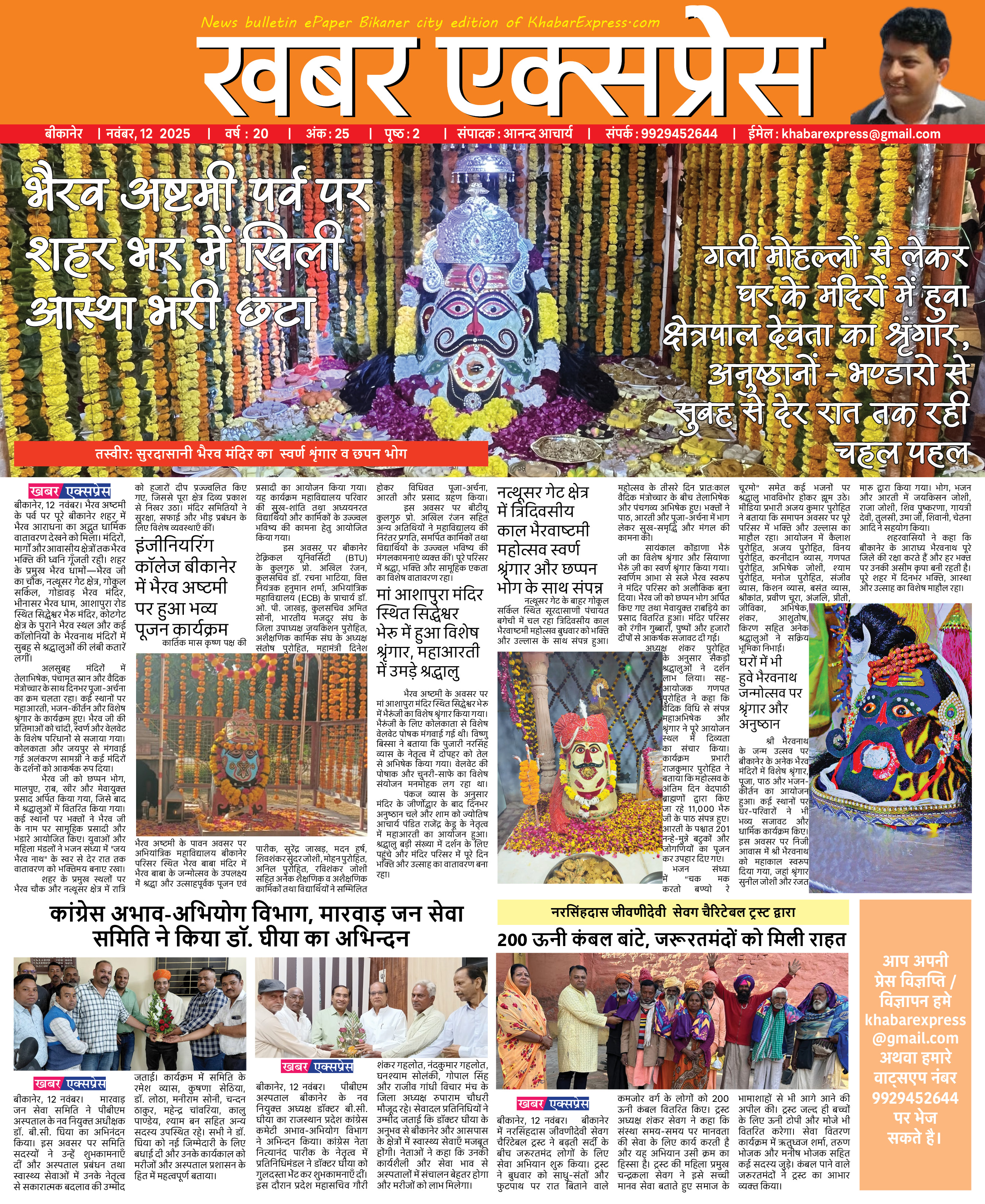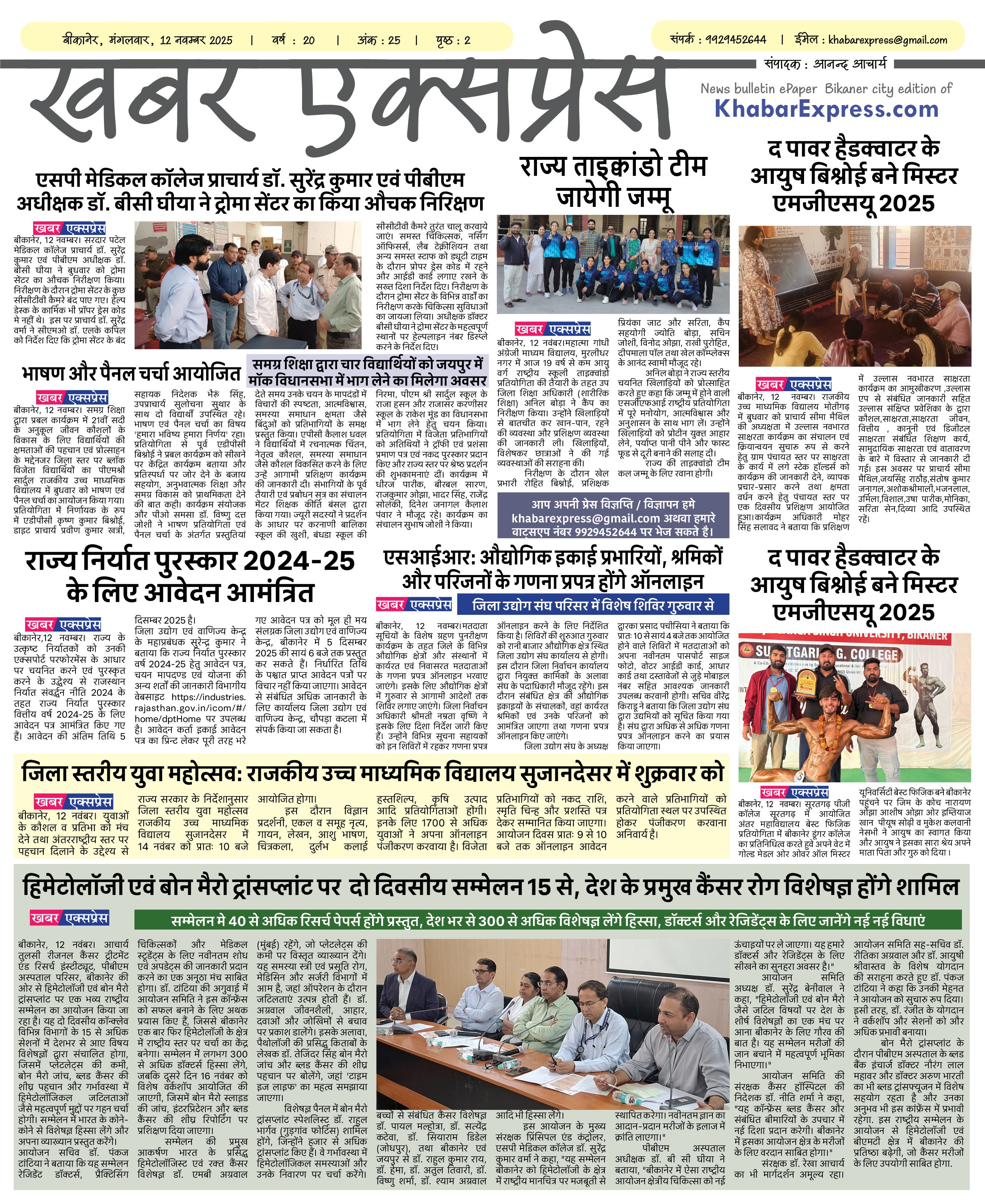 मुख्यपृष्ठ Bikaner ePaper KhabarExpress dated 12 November 2025 byAnand Acharya Published:11/13/2025 01:03:00 pm Facebook Twitter