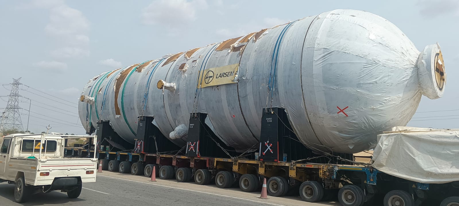 राष्ट्रीय राजमार्ग 11 पर अटके रिफाइनरी के हिस्से ले जाते वाहन